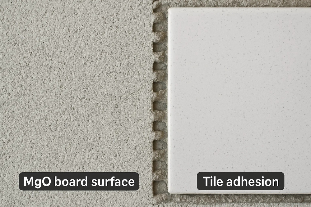 يوفر كلا المجالسين أسطحًا ممتازة للالتصاق بالبلاط. الفرق الرئيسي يكمن في الطريقة. تتيح الطبيعة المسامية للوحة الأسمنتية أن تربط مدافع الهاون الرقيقة من الناحية الميكانيكية أثناء علاجها في السطح. يوصي بعض الشركات المصنعة بتعليق السطح لتقليل الامتصاص ومنع المجموعة الرقيقة من التجفيف بسرعة كبيرة ، مما قد يضعف الرابطة. يوفر سطح MGO السلس والكثيف رابطة كيميائية قوية مع مجموعة رقيقة ، مما يضمن أن البلاط يلتزم بشكل آمن وتستمر لسنوات.